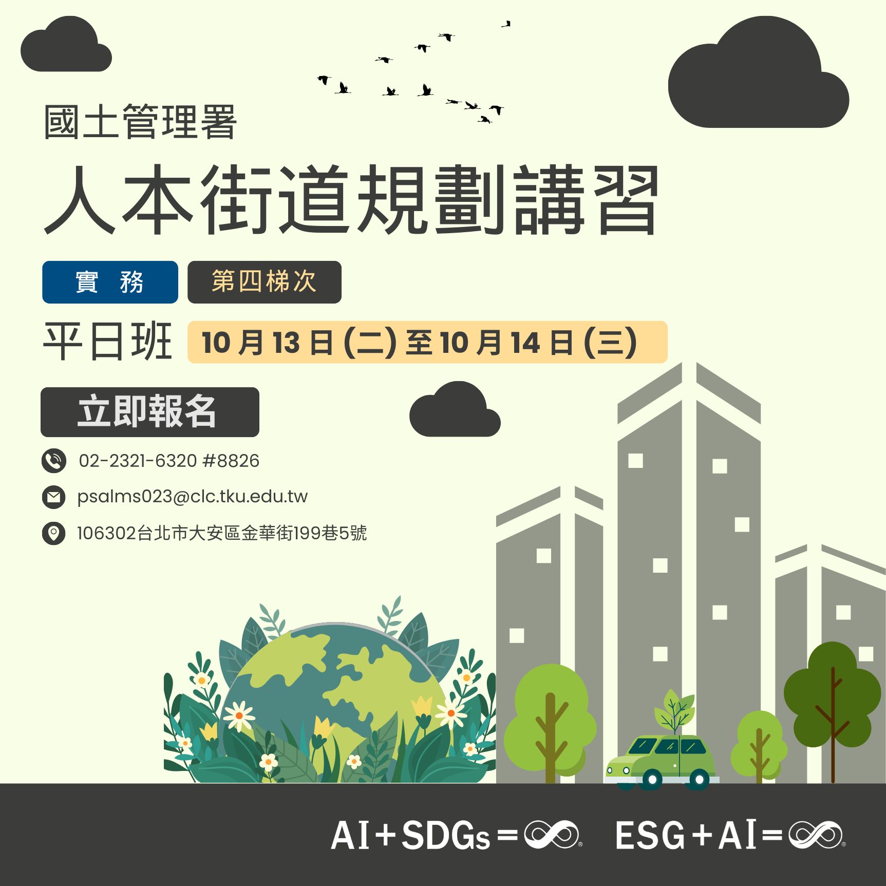 未達開班人數時將與本校碩士在職專班併班上課,每課程限額5名,完成報名及繳費者始佔名額。欲附讀淡水課程者,請另外洽詢。