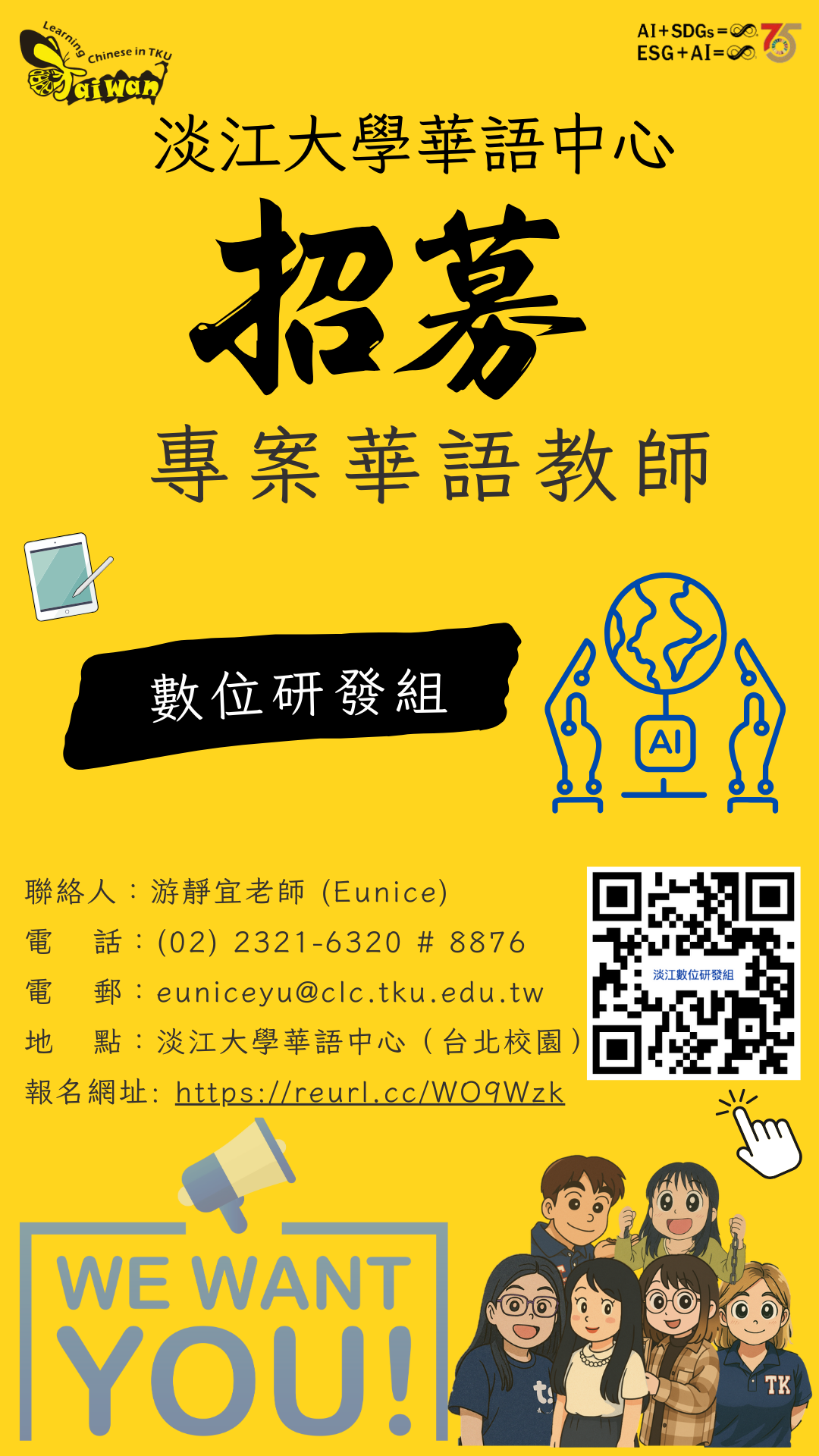 【淡江大學華語中心】數位研發組_誠徵專案華語教師 1名