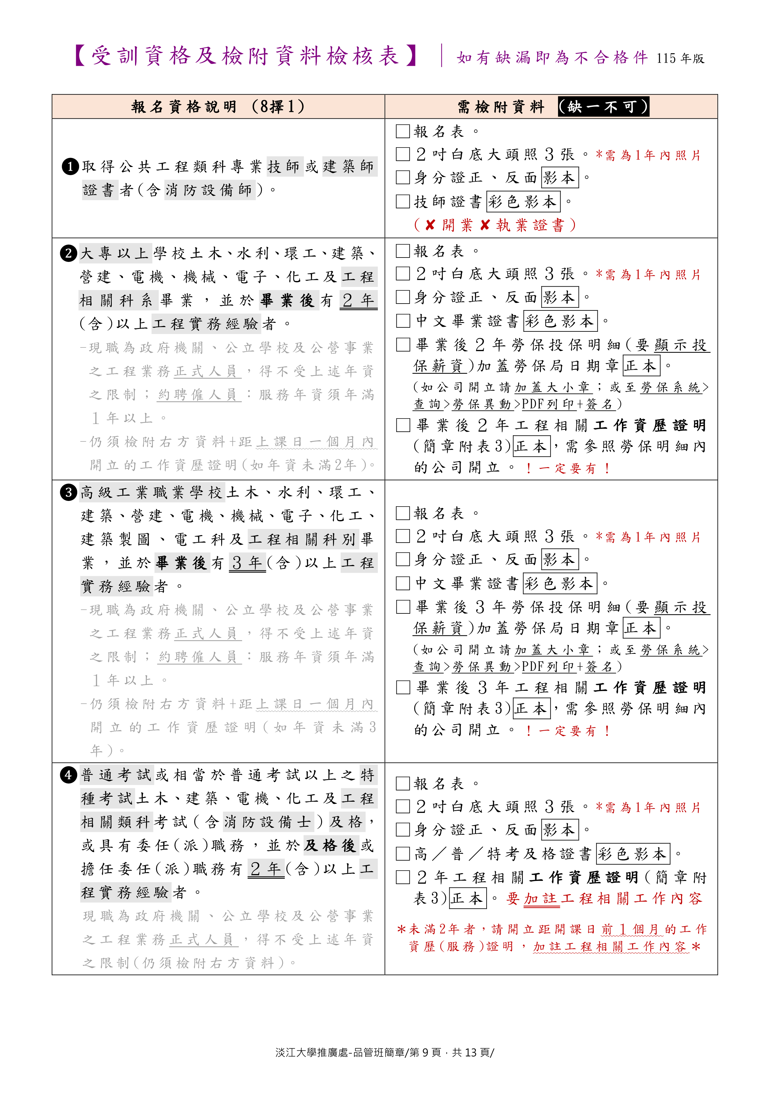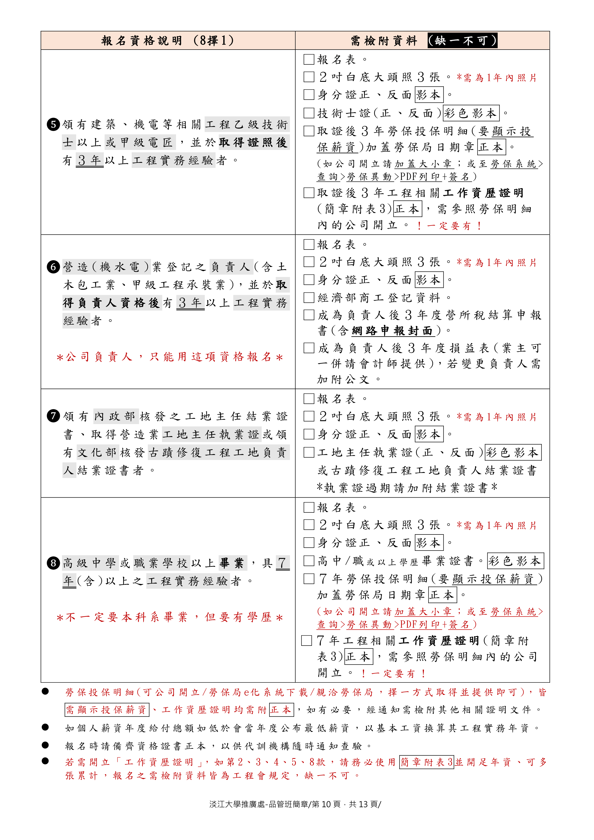 .受訓資格(8擇1),詳細檢附資料請見簡章第9~10頁
