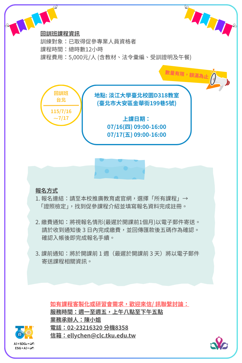 本單位保有課程時間調整及場地之變動權