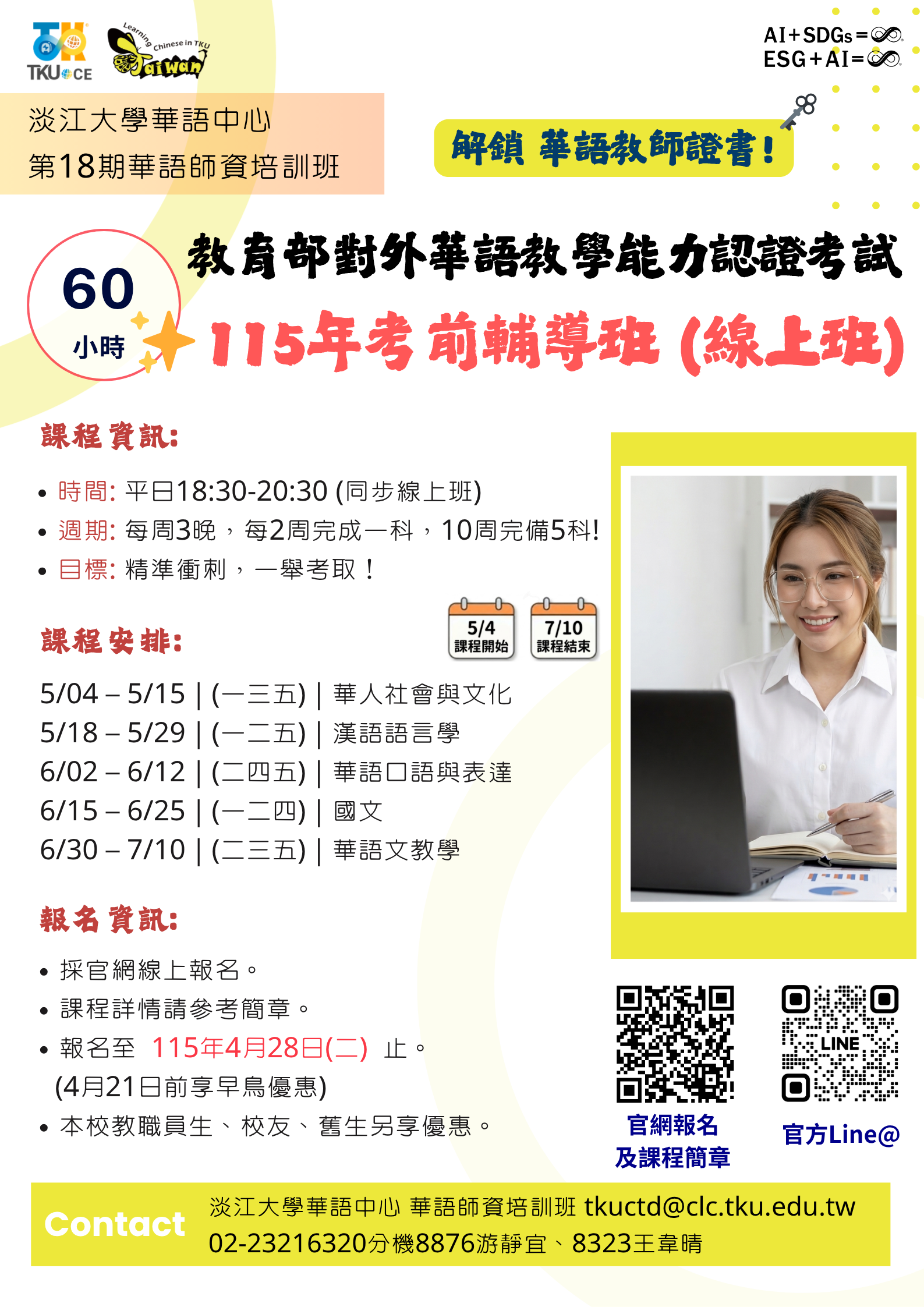 華語師資培訓班-60小時 華語師資證 輔導班(第18期)